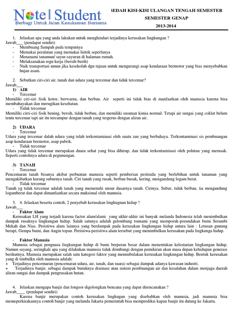 Artikel ini akan menyajikan serangkaian contoh soal Pendidikan Lingkungan Hidup untuk Kelas XI Semester 1, lengkap dengan penjelasan singkat mengenai cakupan materi dan tujuan pembelajarannya. Diharapkan, kumpulan soal ini dapat menjadi panduan bagi guru dalam menyusun evaluasi, serta menjadi sarana belajar mandiri yang efektif bagi siswa dalam menguji pemahaman mereka.