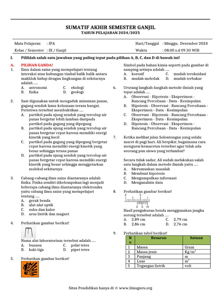 Ujian Akhir Semester (UAS) merupakan salah satu tolok ukur penting bagi siswa dalam mengevaluasi pemahaman mereka terhadap materi yang telah dipelajari selama satu semester. Bagi siswa Kelas 9, mata pelajaran Ilmu Pengetahuan Alam (IPA) seringkali menjadi salah satu yang paling menantang karena cakupan materinya yang luas dan konsep-konsep yang membutuhkan pemahaman mendalam.